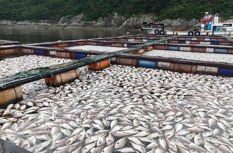 올해 8월, 경남 남해군 인근 해상에서 시작된 적조가 빠르게 확산하면서, 남해 전 해안으로 번져 어민들이 막대한 피해를 입었다.